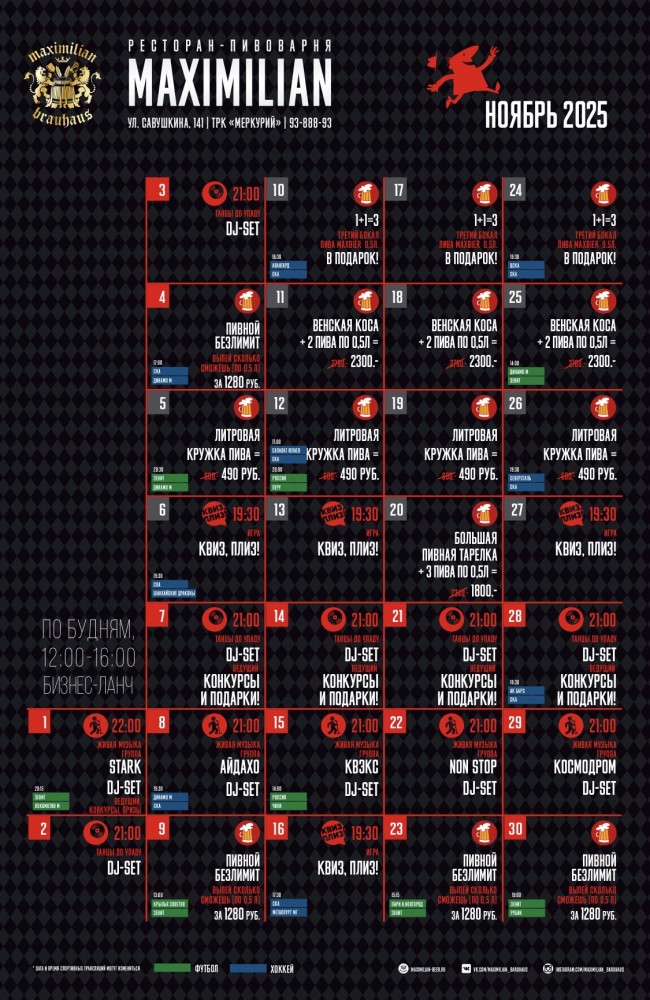 События в ноябре в MAXIMILIAN